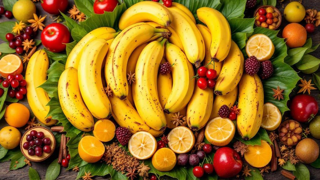 Plantains are a nutritious staple that pack a punch with their unique blend of complex carbohydrates, vitamins, and minerals. You'll find they offer 663mg of potassium and a healthy dose of vitamins A and C per cup, supporting heart health and enhancing the immune system. The rich dietary fiber aids digestion, regulating bowel movements and promoting satiety, which can help with weight management. Unlike bananas, plantains are versatile in the kitchen, perfect for both savory and sweet dishes. Incorporating them into your diet could lead to numerous health benefits, and there's more to uncover about their impact and use.